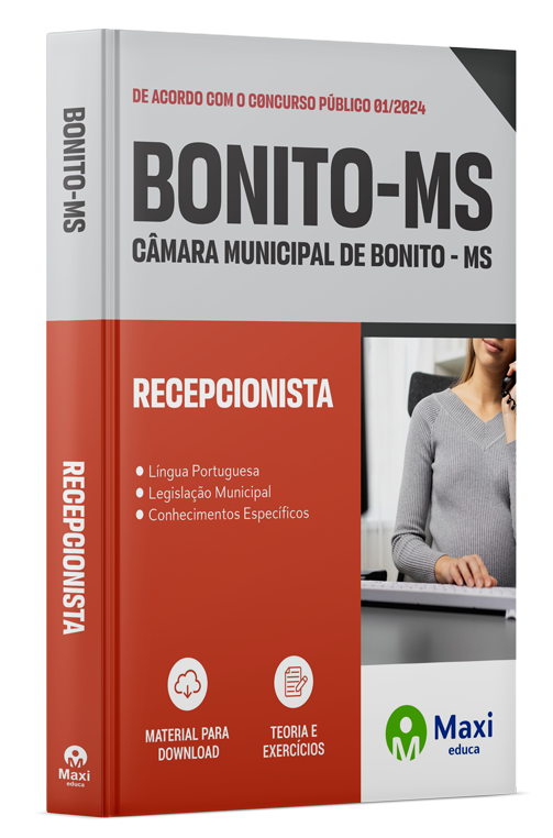 Apostila completa e atualizada para o concurso da Câmara de Bonito - MS 2024, cargo Recepcionista.