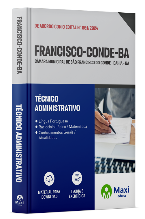 Apostila completa e atualizada para o concurso da Câmara de São Francisco do Conde - BA 2024, cargo Técnico Administrativo.