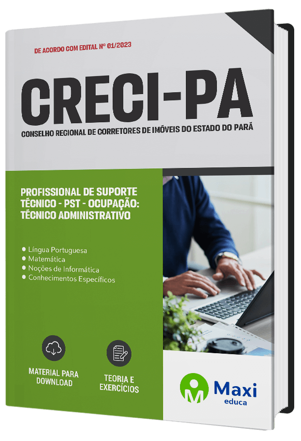 Apostila completa e atualizada para o concurso do CRECI-PA 2023, cargo Profissional de Suporte Técnico - Ocupação: TÉCNICO ADMINISTRATIVO.