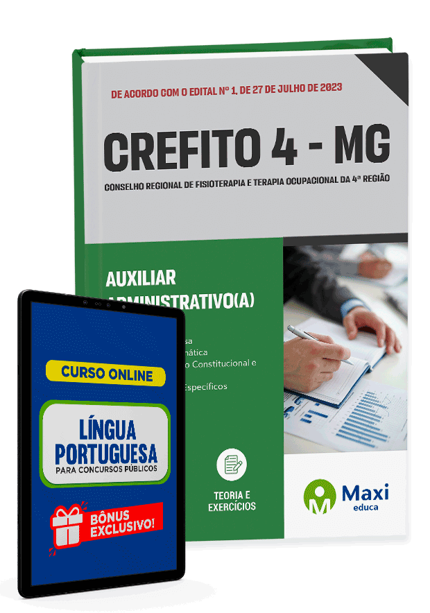 Apostila completa e atualizada para o concurso do CREFITO-4-MG 2023, para o cargo de Auxiliar Administrativo(a).