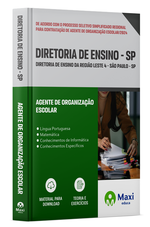 Apostila completa e atualizada para o concurso da Diretoria de Ensino - SP 2024, cargo Agente de Organização Escolar.