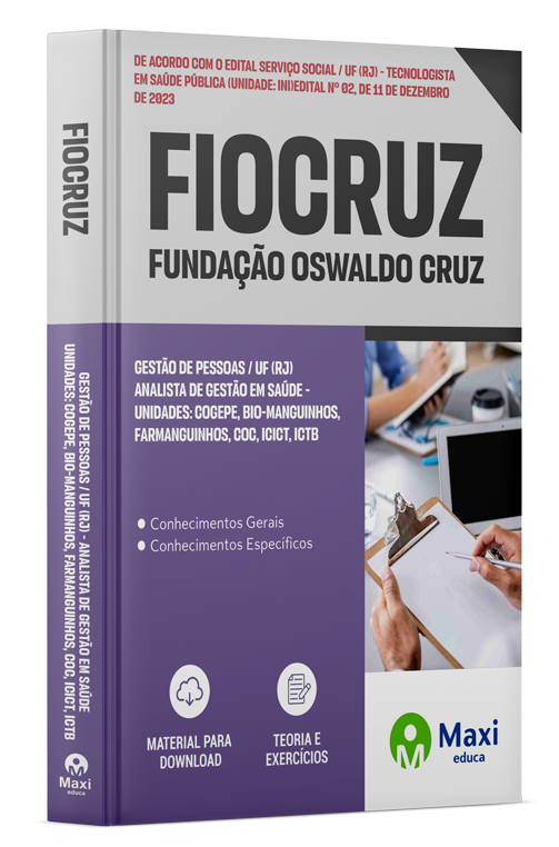 Apostila completa e atualizada para o concurso do FIOCRUZ 2023, cargo Gestão de Pessoas / UF (RJ) - Analista de Gestão em Saúde - Unidades: Cogepe, Bio-Manguinhos, Farmanguinhos, COC, Icict, ICTB