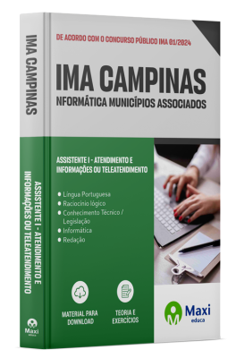 Apostila completa e atualizada para o concurso da IMA Campinas 2024, cargo Assistente I - Atendimento e Informações ou Teleatendimento.