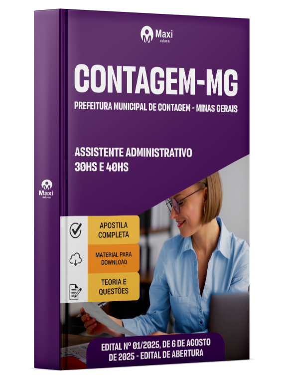 Apostila completa e atualizada para o concurso do(a) Prefeitura de Contagem - MG - 2025, cargo Assistente Administrativo – 30hs e 40hs .