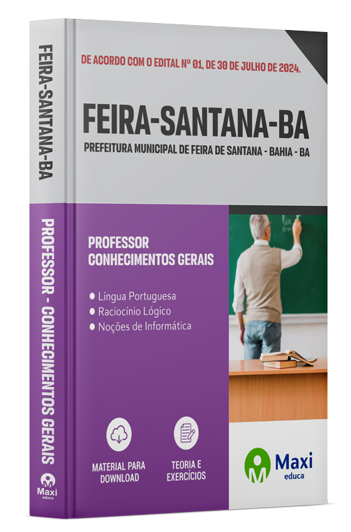 Apostila completa e atualizada para o concurso do(a) Prefeitura de Feira de Santana-BA 2024, cargo Professor - Conhecimentos Gerais.