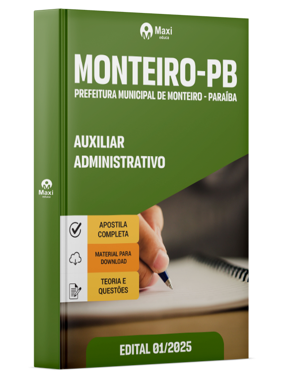 Apostila completa e atualizada para o concurso do(a) Prefeitura de Monteiro - PB - 2025, cargo Auxiliar Administrativo