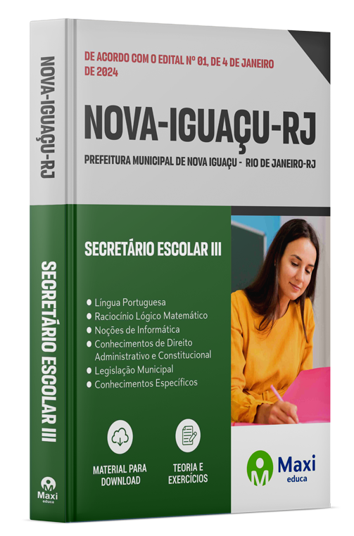 Apostila completa e atualizada para o concurso da Prefeitura de Nova Iguaçu - RJ 2024, cargo Secretário Escolar III .