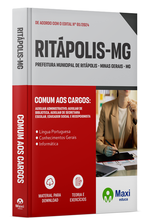 Apostila completa e atualizada para o concurso do(a) Prefeitura de Ritápolis-MG 2024, cargo Auxiliar Administrativo; Auxiliar De Biblioteca, Auxiliar De Secretaria Escolar, Educador Social E Recepcionista.