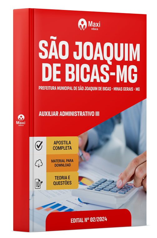 Apostila completa e atualizada para o concurso do(a) Prefeitura de São Joaquim de Bicas-MG 2024, cargo Auxiliar Administrativo III.