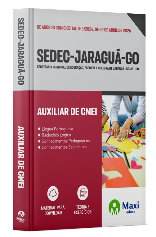 Apostila completa e atualizada para o concurso da SEDEC Jaraguá - GO 2024, para o cargo de Auxiliar de CMEI.