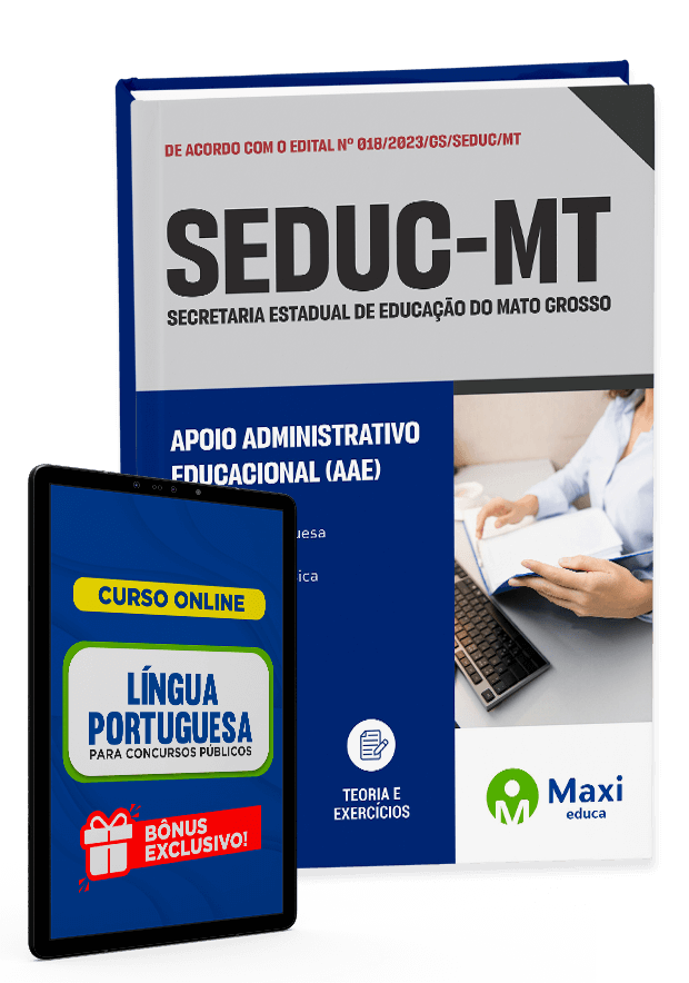 Apostila completa e atualizada para o concurso da SEDUC-MT 2023, cargo Apoio Administrativo Educacional (AAE).