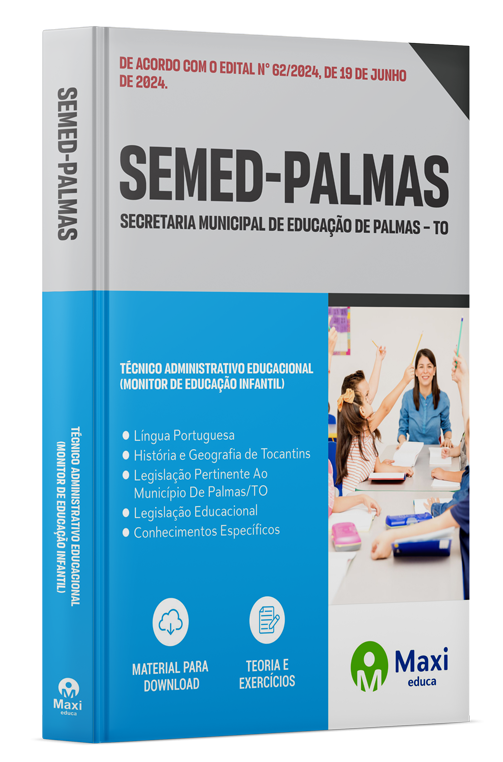 Apostila completa e atualizada para o concurso da SEMED Palmas – TO 2024, cargo Técnico Administrativo Educacional (Monitor de Educação Infantil).