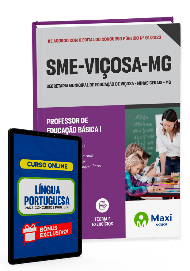 Apostila completa e atualizada para o concurso da SME Viçosa - MG - GO 2023, para o cargo de Professor de Educação Básica I.