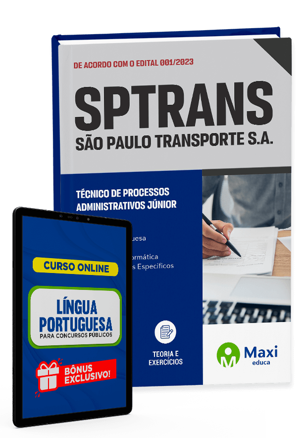 Apostila completa e atualizada para o concurso da SPTrans 2023, cargo Técnico de Processos Administrativos Júnior.