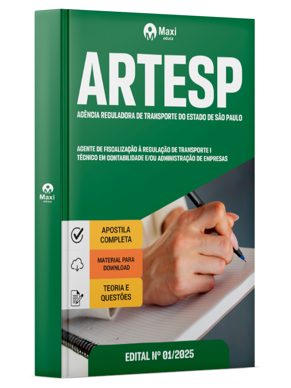 Liberação prevista para: 12/11/2025Apostila ARTESP 2025 - Agente de Fiscalização à Regulação de Transporte I - Técnico em Contabilidade e/ou Administração de Empresas