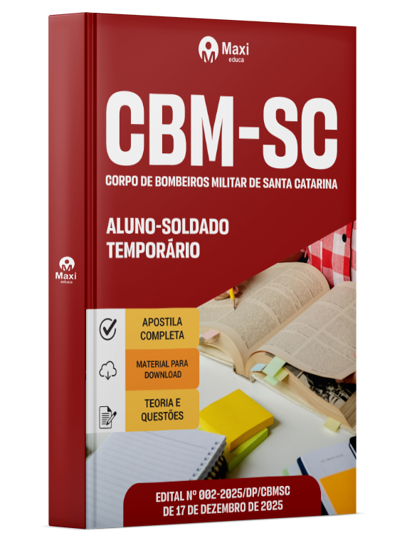 A Apostila Digital Corpo de Bombeiros Militar de Santa Catarina em PDF 2026 - Aluno-Soldado Temporário foi organizada para proporcionar um melhor rendimento na sua preparação, abordando cada conteúdo de forma objetiva e direcionada. Estude para o Concurso da Corpo de Bombeiros Militar de Santa Catarina 2026 com um material de acordo com o Edital oficial para o cargo de Aluno-Soldado Temporário.