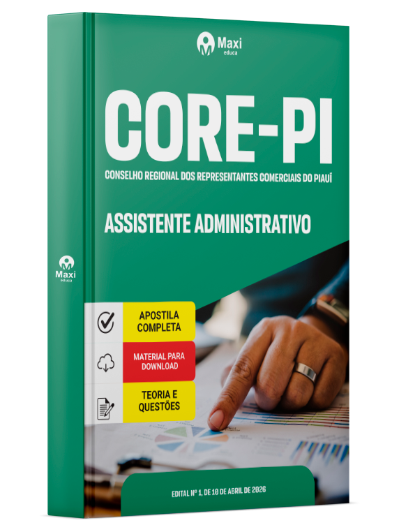 Liberação prevista para: 27/04/2026Apostila CORE-PI 2026 - Assistente Administrativo