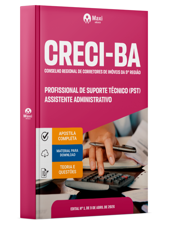 Liberação prevista para: 16/04/2026Apostila CRECI-BA 2026 - Profissional de Suporte Técnico (PST) - Assistente Administrativo