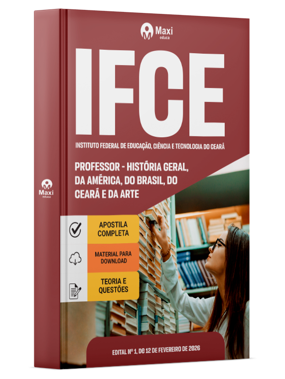 A Apostila Digital Instituto Federal de Educação, Ciência e Tecnologia do Ceará em PDF 2026 - Professor - História Geral, da América, do Brasil, do Ceará e da Arte foi organizada para proporcionar um melhor rendimento na sua preparação, abordando cada conteúdo de forma objetiva e direcionada. Estude para o Concurso da Instituto Federal de Educação, Ciência e Tecnologia do Ceará 2026 com um material de acordo com o Edital oficial para o cargo de Professor - História Geral, da América, do Brasil, do Ceará e da Arte.