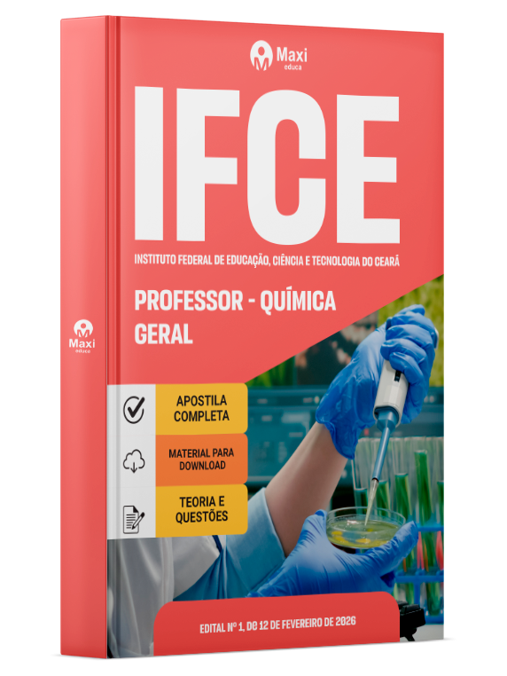 A Apostila Digital Instituto Federal de Educação, Ciência e Tecnologia do Ceará em PDF 2026 - Professor - Química Geral foi organizada para proporcionar um melhor rendimento na sua preparação, abordando cada conteúdo de forma objetiva e direcionada. Estude para o Concurso da Instituto Federal de Educação, Ciência e Tecnologia do Ceará 2026 com um material de acordo com o Edital oficial para o cargo de Professor - Química Geral.
