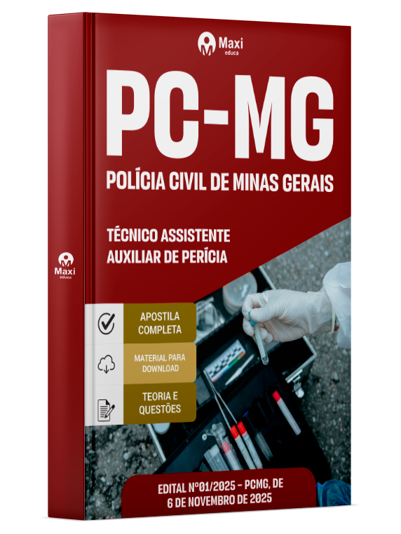 Liberação prevista para: 17/11/2025Apostila PC MG 2025 - Técnico Assistente - Auxiliar de Perícia