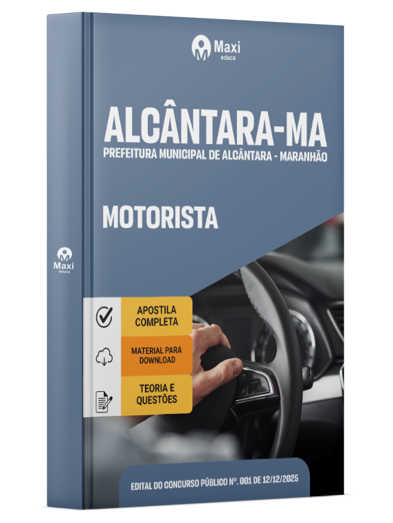 A Apostila Digital Prefeitura Municipal de Alcântara-Maranhão em PDF 2026 - Motorista foi organizada para proporcionar um melhor rendimento na sua preparação, abordando cada conteúdo de forma objetiva e direcionada. Estude para o Concurso da Prefeitura Municipal de Alcântara-Maranhão 2026 com um material de acordo com o Edital oficial para o cargo de Motorista.