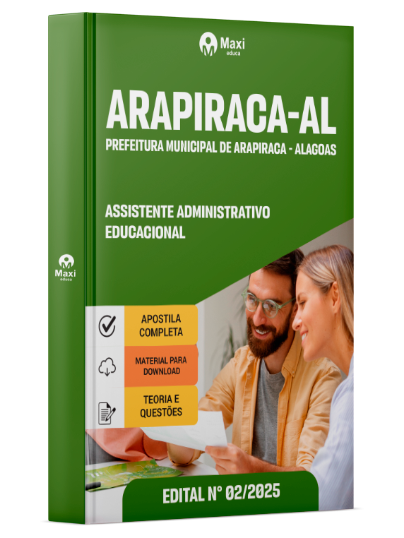 A Apostila Digital Prefeitura Municipal de Arapiraca - AL em PDF 02 - 2025 - Assistente Administrativo Educacional foi organizada para proporcionar um melhor rendimento na sua preparação, abordando cada conteúdo de forma objetiva e direcionada. Estude para o Concurso da Prefeitura Municipal de Arapiraca - AL 02 - 2025 com um material de acordo com o Edital oficial para o cargo de Assistente Administrativo Educacional.