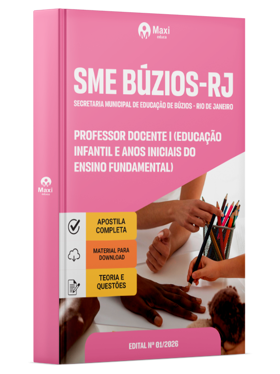 A Apostila Digital Prefeitura Municipal de Armação dos Búzios-RJ em PDF 2026 - Professor Docente I (Educação Infantil e Anos Iniciais do Ensino Fundamental) foi organizada para proporcionar um melhor rendimento na sua preparação, abordando cada conteúdo de forma objetiva e direcionada. Estude para o Concurso da Prefeitura Municipal de Armação dos Búzios-RJ 2026 com um material de acordo com o Edital oficial para o cargo de Professor Docente I (Educação Infantil e Anos Iniciais do Ensino Fundamental).