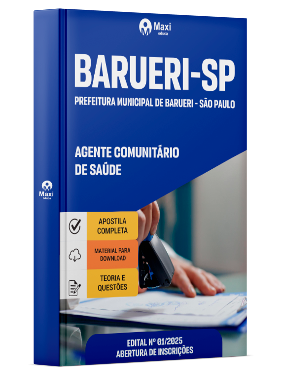 A Apostila Digital Prefeitura Municipal de Barueri - SP em PDF 2026 - Agente Comunitário de Saúde foi organizada para proporcionar um melhor rendimento na sua preparação, abordando cada conteúdo de forma objetiva e direcionada. Estude para o Concurso da Prefeitura Municipal de Barueri - SP 2026 com um material de acordo com o Edital oficial para o cargo de Agente Comunitário de Saúde.