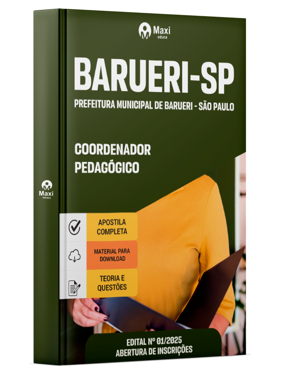 A Apostila Digital Prefeitura Municipal de Barueri - SP em PDF 2026 - Coordenador Pedagógico foi organizada para proporcionar um melhor rendimento na sua preparação, abordando cada conteúdo de forma objetiva e direcionada. Estude para o Concurso da Prefeitura Municipal de Barueri - SP 2026 com um material de acordo com o Edital oficial para o cargo de Coordenador Pedagógico.