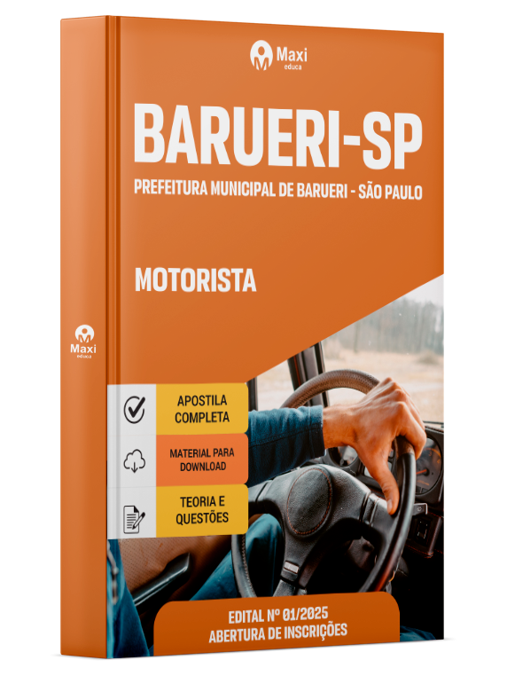 A Apostila Digital Prefeitura Municipal de Barueri - SP em PDF 2026 - Motorista foi organizada para proporcionar um melhor rendimento na sua preparação, abordando cada conteúdo de forma objetiva e direcionada. Estude para o Concurso da Prefeitura Municipal de Barueri - SP 2026 com um material de acordo com o Edital oficial para o cargo de Motorista.
