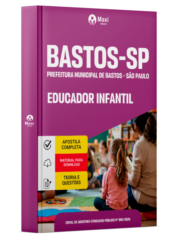 Liberação prevista para: 01/04/2026Apostila Prefeitura de Bastos - SP 2026 - Educador Infantil