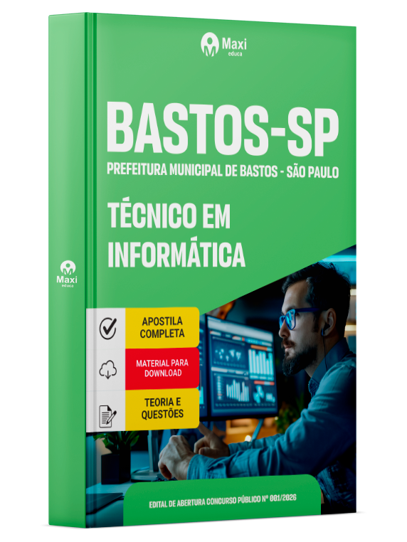 A Apostila Digital Prefeitura Municipal de Bastos - SP em PDF 2026 - Técnico em Informática foi organizada para proporcionar um melhor rendimento na sua preparação, abordando cada conteúdo de forma objetiva e direcionada. Estude para o Concurso da Prefeitura Municipal de Bastos - SP 2026 com um material de acordo com o Edital oficial para o cargo de Técnico em Informática.