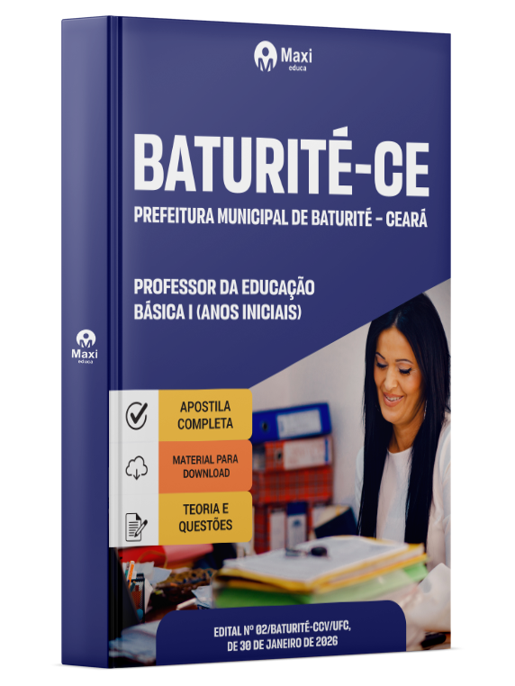 A Apostila Digital Prefeitura Municipal de Baturité-CE em PDF 2026 - Professor da Educação Básica I (Anos Iniciais) foi organizada para proporcionar um melhor rendimento na sua preparação, abordando cada conteúdo de forma objetiva e direcionada. Estude para o Concurso da Prefeitura Municipal de Baturité-CE 2026 com um material de acordo com o Edital oficial para o cargo de Professor da Educação Básica I (Anos Iniciais).