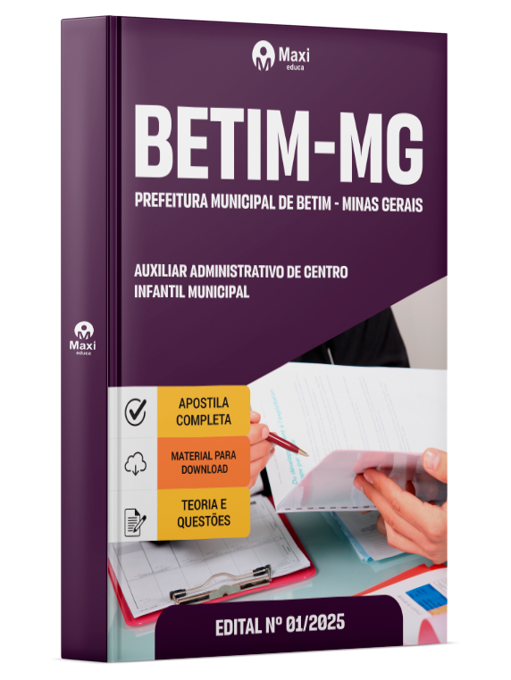 A Apostila Digital Prefeitura Municipal de Betim - MG em PDF 01 - 2025 - Auxiliar Administrativo de Centro Infantil Municipal foi organizada para proporcionar um melhor rendimento na sua preparação, abordando cada conteúdo de forma objetiva e direcionada. Estude para o Concurso da Prefeitura Municipal de Betim - MG 01 - 2025 com um material de acordo com o Edital oficial para o cargo de Auxiliar Administrativo de Centro Infantil Municipal.