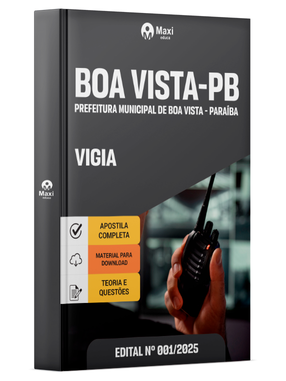 A Apostila Digital Prefeitura Municipal de Boa Vista-PB em PDF 001 - 2025 - Vigia foi organizada para proporcionar um melhor rendimento na sua preparação, abordando cada conteúdo de forma objetiva e direcionada. Estude para o Concurso da Prefeitura Municipal de Boa Vista-PB 001 - 2025 com um material de acordo com o Edital oficial para o cargo de Vigia.