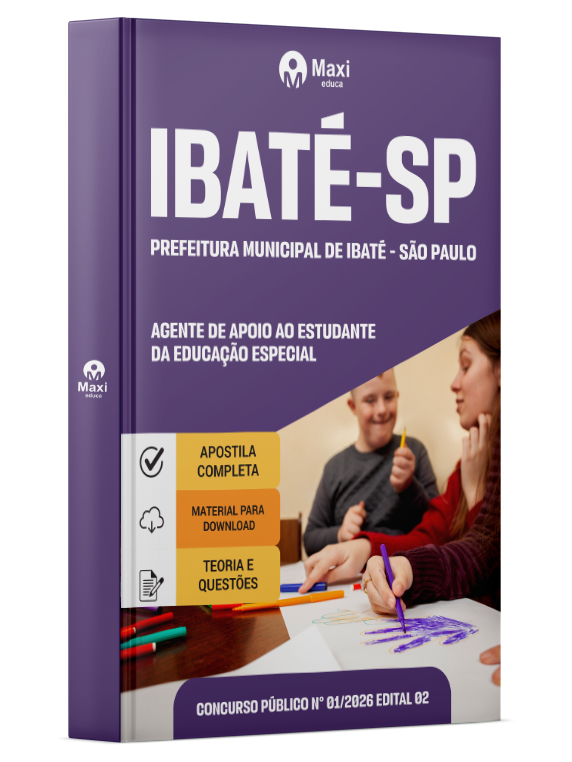 A Apostila Digital Prefeitura Municipal de Ibaté - SP em PDF 2026 - Agente de Apoio ao Estudante da Educação Especial foi organizada para proporcionar um melhor rendimento na sua preparação, abordando cada conteúdo de forma objetiva e direcionada. Estude para o Concurso da Prefeitura Municipal de Ibaté - SP 2026 com um material de acordo com o Edital oficial para o cargo de Agente de Apoio ao Estudante da Educação Especial.