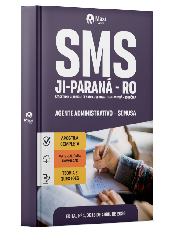 Liberação prevista para: 30/04/2026Apostila Prefeitura de Ji-Paraná - RO 2026 - Agente Administrativo - SEMUSA
