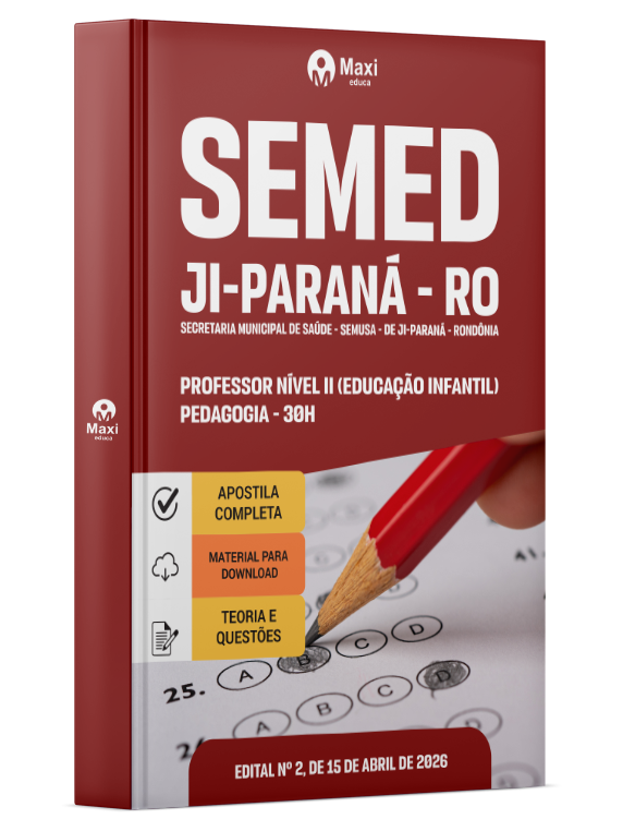 Liberação prevista para: 30/04/2026Apostila Prefeitura de Ji-Paraná - RO 2026 - Professor Nível II (Educação Infantil) - Pedagogia - 30h