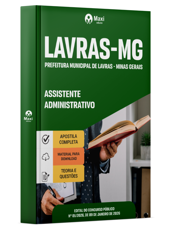 Estude para o Concurso da Prefeitura Municipal de Lavras - MG 2026 com um material de acordo com o Edital oficial para o cargo de Assistente Administrativo.