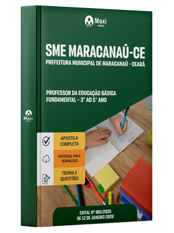 Liberação prevista para: 24/01/2026Apostila Prefeitura de Maracanaú - CE 2026 - Professor da Educação Básica - Fundamental – 3° ao 5° Ano