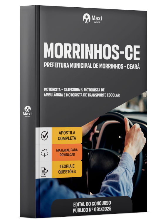 Liberação prevista para: 23/10/2025Apostila Prefeitura de Morrinhos-CE em PDF 2025 - Motorista – Categoria B, Motorista De Ambulância e Motorista De Transporte Escolar