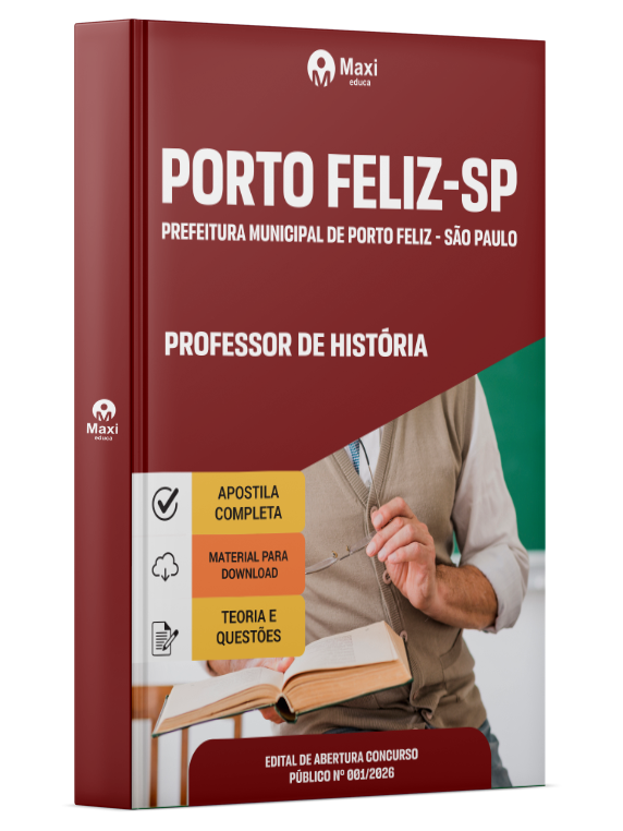 A Apostila Digital Prefeitura Municipal de Porto Feliz - SP em PDF 2026 - Professor de História foi organizada para proporcionar um melhor rendimento na sua preparação, abordando cada conteúdo de forma objetiva e direcionada. Estude para o Concurso da Prefeitura Municipal de Porto Feliz - SP 2026 com um material de acordo com o Edital oficial para o cargo de Professor de História.