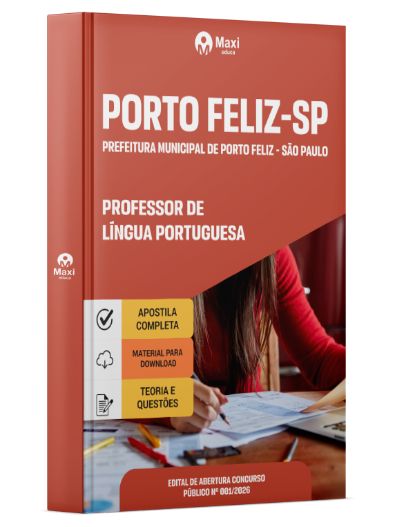 A Apostila Digital Prefeitura Municipal de Porto Feliz - SP em PDF 2026 - Professor de Língua Portuguesa foi organizada para proporcionar um melhor rendimento na sua preparação, abordando cada conteúdo de forma objetiva e direcionada. Estude para o Concurso da Prefeitura Municipal de Porto Feliz - SP 2026 com um material de acordo com o Edital oficial para o cargo de Professor de Língua Portuguesa.