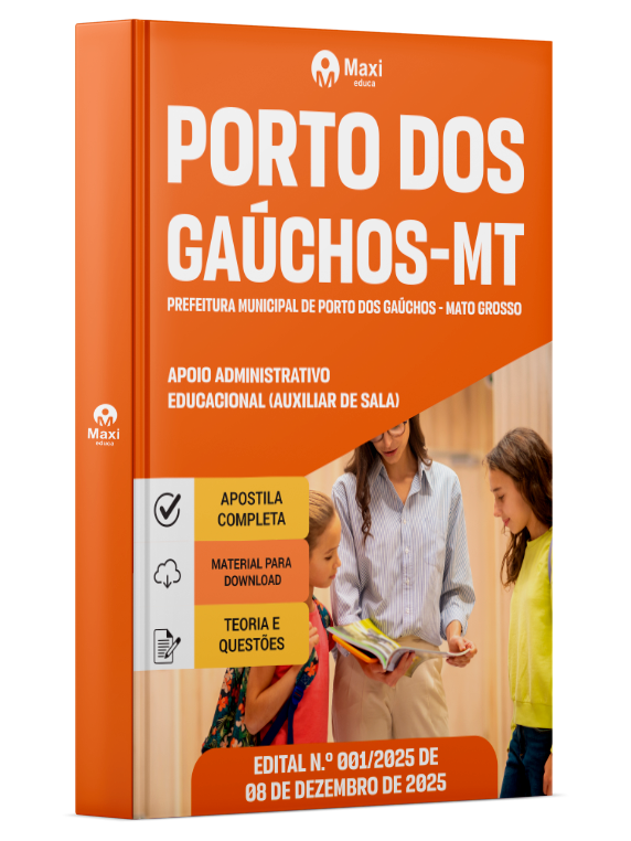A Apostila Digital Prefeitura Municipal de Porto dos Gaúchos-MT em PDF 2026 - Apoio Administrativo Educacional "E" Auxiliar de Sala foi organizada para proporcionar um melhor rendimento na sua preparação, abordando cada conteúdo de forma objetiva e direcionada. Estude para o Concurso da Prefeitura Municipal de Porto dos Gaúchos-MT 2026 com um material de acordo com o Edital oficial para o cargo de Apoio Administrativo Educacional "E" Auxiliar de Sala.