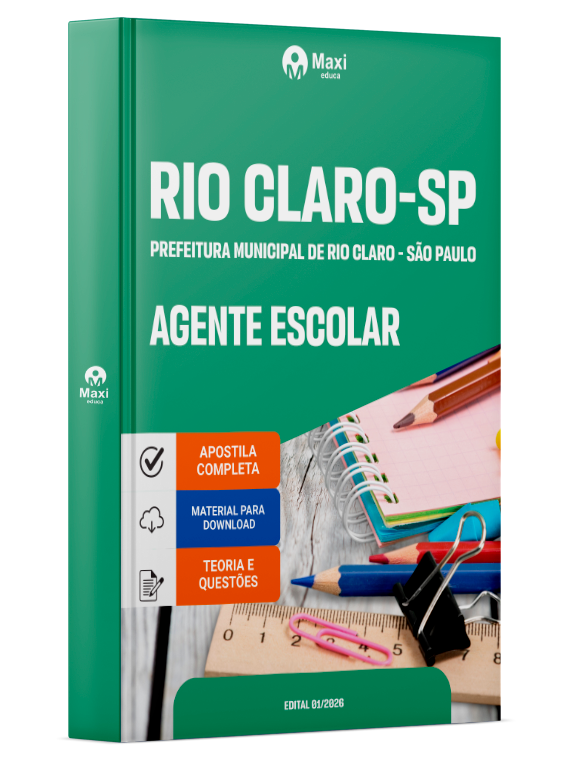 Liberação prevista para: 29/04/2026Apostila Prefeitura de Rio Claro - SP 2026 - Agente Escolar