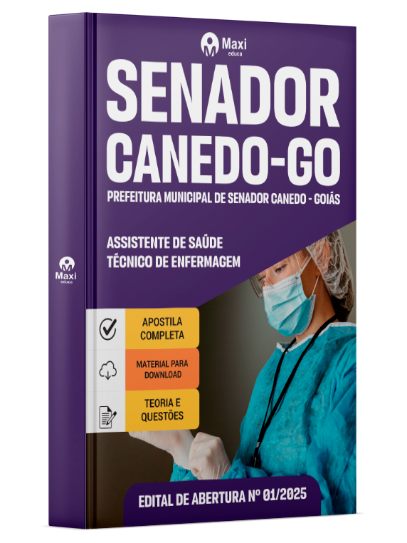 Estude para o Concurso da Prefeitura Municipal de Senador Canedo - GO 2025 com um material de acordo com o Edital oficial para o cargo de Assistente de Saúde – Técnico de Enfermagem.