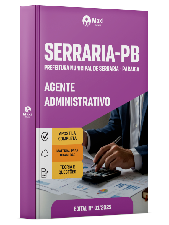 A Apostila Digital Prefeitura Municipal de Serraria-PB em PDF 2026 - Agente Administrativo foi organizada para proporcionar um melhor rendimento na sua preparação, abordando cada conteúdo de forma objetiva e direcionada. Estude para o Concurso da Prefeitura Municipal de Serraria-PB 2026 com um material de acordo com o Edital oficial para o cargo de Agente Administrativo.