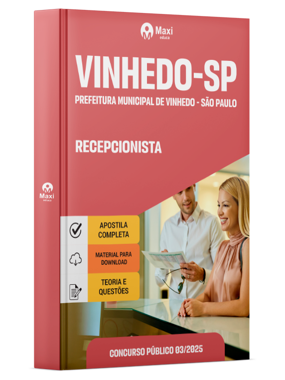 Liberação prevista para: 10/12/2025Apostila Prefeitura de Vinhedo - SP 2025 - Recepcionista
