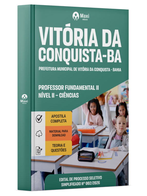 A Apostila Digital Prefeitura Municipal de Vitória da Conquista - BA em PDF 2026 - Professor Fundamental II Nível II - Ciências foi organizada para proporcionar um melhor rendimento na sua preparação, abordando cada conteúdo de forma objetiva e direcionada. Estude para o Concurso da Prefeitura Municipal de Vitória da Conquista - BA 2026 com um material de acordo com o Edital oficial para o cargo de Professor Fundamental II Nível II - Ciências.